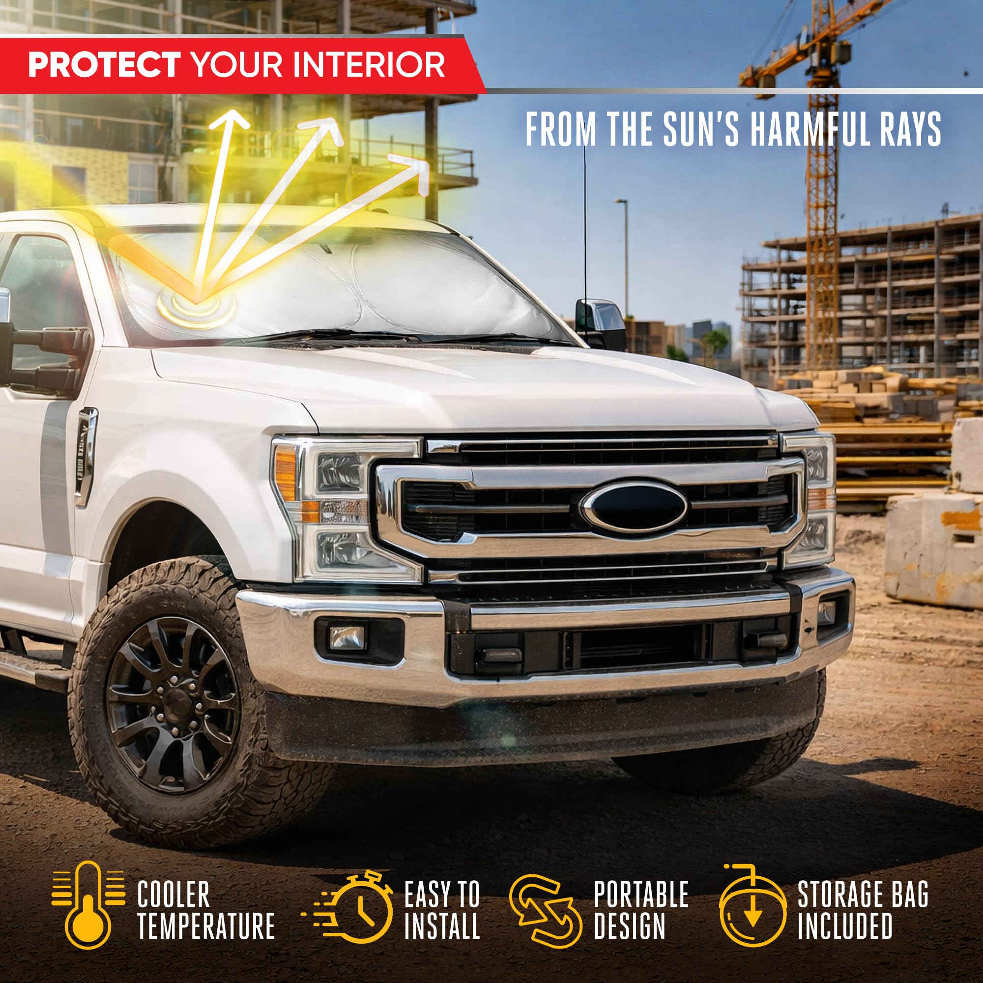 Motor Trend Custom Fit Ford Super Duty Sun Shade for Windshield 2017-2022 Ford F-250 F-350 F-450 F-550 Accessories - Truck Windshield Sunshade Foldable Car Sun Blocker - Interior UV Protection Visor